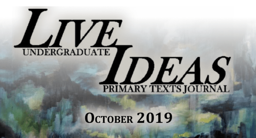 The October edition of Live Ideas: Undergraduate Primary Texts Journal was published on Tuesday, October 15th! It includes artwork, poetry, creative and academic articles and part one of a short story. You can view the journal by going to our archives page or clicking HERE.