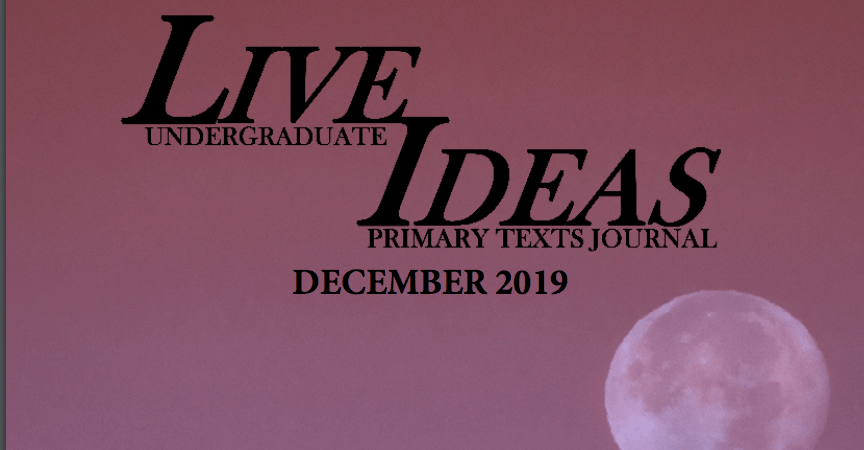 The October edition of Live Ideas: Undergraduate Primary Texts Journal was published on Tuesday, October 15th! It includes artwork, poetry, creative and academic articles and part one of a short story. You can view the journal by going to our archives page or clicking HERE.